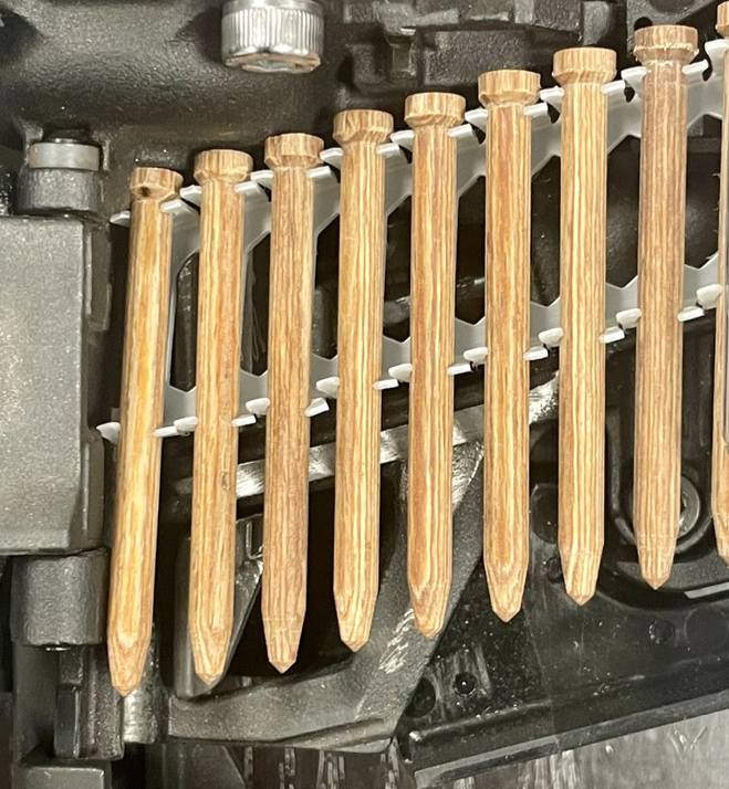 Die neuen BAUSSMANN Holznägel können in bekannter Weise mit Druckluftnaglern verarbeitet werden.